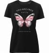 Жіноча преміум-футболка власного виробництва приталеного крою. Виготовлена з якісної тканини (95% бавовна, 5% еластан) — щільна, м'яка та приємна до тіла. Принт You are free to fly можна розмістити на грудях, спині або рукаві.