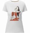 Жіноча преміум-футболка власного виробництва приталеного крою. Виготовлена з якісної тканини (95% бавовна, 5% еластан) — щільна, м'яка та приємна до тіла. Принт Жінка що сидить можна розмістити на грудях, спині або рукаві.