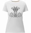 Жіноча преміум-футболка власного виробництва приталеного крою. Виготовлена з якісної тканини (95% бавовна, 5% еластан) — щільна, м'яка та приємна до тіла. Принт Жирафа з карими очима можна розмістити на грудях, спині або рукаві.