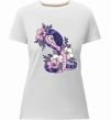 Жіноча преміум-футболка власного виробництва приталеного крою. Виготовлена з якісної тканини (95% бавовна, 5% еластан) — щільна, м'яка та приємна до тіла. Принт Змія в квітах можна розмістити на грудях, спині або рукаві.