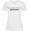 Футболка приталеного крою із бічними швами. Тканина 100% бавовна - м'яка та приємна на дотик. Після прання при правильному догляді футболка не розтягується, не сідає і не линяє. Нанести принт You know who is душніла? на футболку можна на груди, на спину, на рукав. Колір принта можна замовити будь-який!