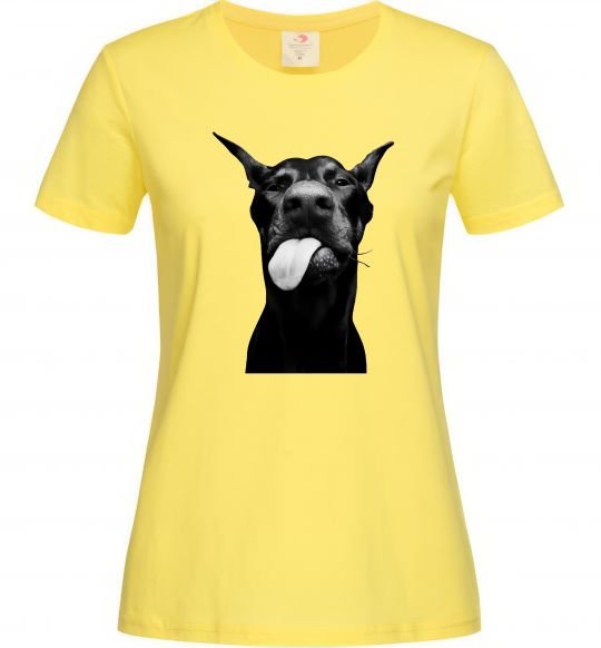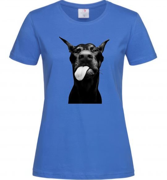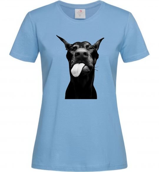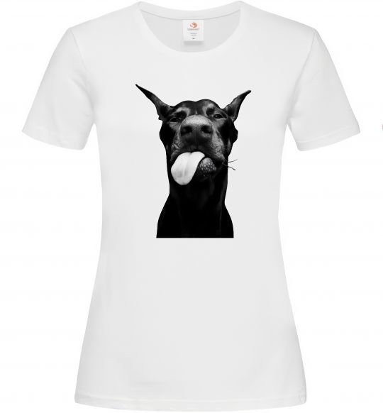 Футболка приталенного кроя с боковыми швами. Ткань 100% хлопок - мягкая и приятная на ощупь. После стирки, при правильном уходе, футболка не растягивается, не садится и не линяет. Нанести принт Доберман показує язик на футболку можно на грудь, на спину, на рукав. Цвет принта можно заказать любой!