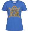 Футболка приталенного кроя с боковыми швами. Ткань 100% хлопок - мягкая и приятная на ощупь. После стирки, при правильном уходе, футболка не растягивается, не садится и не линяет. Нанести принт Exuses don't burn calories на футболку можно на грудь, на спину, на рукав. Цвет принта можно заказать любой!