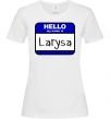 Футболка приталенного кроя с боковыми швами. Ткань 100% хлопок - мягкая и приятная на ощупь. После стирки, при правильном уходе, футболка не растягивается, не садится и не линяет. Нанести принт Hello my name is Larisa на футболку можно на грудь, на спину, на рукав. Цвет принта можно заказать любой!
