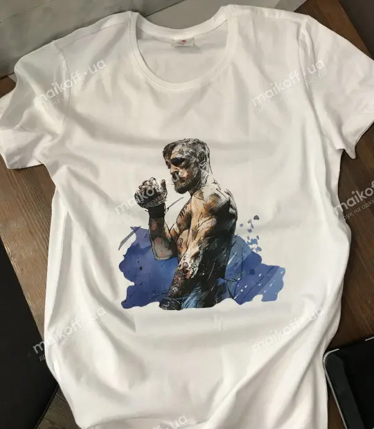 Футболка приталенного кроя с боковыми швами. Ткань 100% хлопок - мягкая и приятная на ощупь. После стирки, при правильном уходе, футболка не растягивается, не садится и не линяет. Нанести принт Конор Макгрегор на футболку можно на грудь, на спину, на рукав. Цвет принта можно заказать любой!
