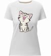 Женская приталенная премиум-футболка собственного производства. Выполнена из качественной ткани (95% хлопок, 5% эластан) — плотная, мягкая и приятная к телу. Принт Кошеня можно нанести на грудь, спину или рукав.