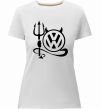 Женская приталенная премиум-футболка собственного производства. Выполнена из качественной ткани (95% хлопок, 5% эластан) — плотная, мягкая и приятная к телу. Принт Volkswagen devil можно нанести на грудь, спину или рукав.