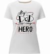 Женская приталенная премиум-футболка собственного производства. Выполнена из качественной ткани (95% хлопок, 5% эластан) — плотная, мягкая и приятная к телу. Принт My dad is my hero можно нанести на грудь, спину или рукав.