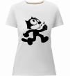 Женская приталенная премиум-футболка собственного производства. Выполнена из качественной ткани (95% хлопок, 5% эластан) — плотная, мягкая и приятная к телу. Принт Felix Cat можно нанести на грудь, спину или рукав.