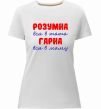 Женская приталенная премиум-футболка собственного производства. Выполнена из качественной ткани (95% хлопок, 5% эластан) — плотная, мягкая и приятная к телу. Принт Розумна і гарна можно нанести на грудь, спину или рукав.