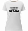 Женская приталенная премиум-футболка собственного производства. Выполнена из качественной ткани (95% хлопок, 5% эластан) — плотная, мягкая и приятная к телу. Принт Обожнюю свого Стаса можно нанести на грудь, спину или рукав.