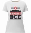 Женская приталенная премиум-футболка собственного производства. Выполнена из качественной ткани (95% хлопок, 5% эластан) — плотная, мягкая и приятная к телу. Принт Аліна вирішує все можно нанести на грудь, спину или рукав.
