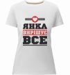 Женская приталенная премиум-футболка собственного производства. Выполнена из качественной ткани (95% хлопок, 5% эластан) — плотная, мягкая и приятная к телу. Принт Янка вирішує все можно нанести на грудь, спину или рукав.