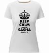 Женская приталенная премиум-футболка собственного производства. Выполнена из качественной ткани (95% хлопок, 5% эластан) — плотная, мягкая и приятная к телу. Принт Keep calm and let Sasha handle it можно нанести на грудь, спину или рукав.