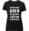 Женская приталенная премиум-футболка собственного производства. Выполнена из качественной ткани (95% хлопок, 5% эластан) — плотная, мягкая и приятная к телу. Принт Віки правлять світом можно нанести на грудь, спину или рукав.
