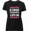 Женская приталенная премиум-футболка собственного производства. Выполнена из качественной ткани (95% хлопок, 5% эластан) — плотная, мягкая и приятная к телу. Принт Ксюші правлять світом можно нанести на грудь, спину или рукав.