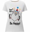 Женская приталенная премиум-футболка собственного производства. Выполнена из качественной ткани (95% хлопок, 5% эластан) — плотная, мягкая и приятная к телу. Принт Don't worry be happy можно нанести на грудь, спину или рукав.