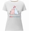 Женская приталенная премиум-футболка собственного производства. Выполнена из качественной ткани (95% хлопок, 5% эластан) — плотная, мягкая и приятная к телу. Принт I meow you forever можно нанести на грудь, спину или рукав.