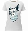Женская приталенная премиум-футболка собственного производства. Выполнена из качественной ткани (95% хлопок, 5% эластан) — плотная, мягкая и приятная к телу. Принт The dog можно нанести на грудь, спину или рукав.