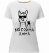 Женская приталенная премиум-футболка собственного производства. Выполнена из качественной ткани (95% хлопок, 5% эластан) — плотная, мягкая и приятная к телу. Принт No drama llama можно нанести на грудь, спину или рукав.