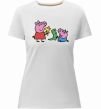 Женская приталенная премиум-футболка собственного производства. Выполнена из качественной ткани (95% хлопок, 5% эластан) — плотная, мягкая и приятная к телу. Принт Пеппа і Джордж з іграшками можно нанести на грудь, спину или рукав.
