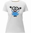 Женская приталенная премиум-футболка собственного производства. Выполнена из качественной ткани (95% хлопок, 5% эластан) — плотная, мягкая и приятная к телу. Принт Радісний міньйон можно нанести на грудь, спину или рукав.