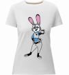 Женская приталенная премиум-футболка собственного производства. Выполнена из качественной ткани (95% хлопок, 5% эластан) — плотная, мягкая и приятная к телу. Принт Джуді Хопс можно нанести на грудь, спину или рукав.