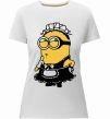 Женская приталенная премиум-футболка собственного производства. Выполнена из качественной ткани (95% хлопок, 5% эластан) — плотная, мягкая и приятная к телу. Принт Міньйон покоївка можно нанести на грудь, спину или рукав.