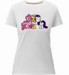 Женская приталенная премиум-футболка собственного производства. Выполнена из качественной ткани (95% хлопок, 5% эластан) — плотная, мягкая и приятная к телу. Принт Раріті Флаттершай та Пінкі Пай можно нанести на грудь, спину или рукав.
