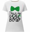 Женская приталенная премиум-футболка собственного производства. Выполнена из качественной ткани (95% хлопок, 5% эластан) — плотная, мягкая и приятная к телу. Принт This is my lucky bow можно нанести на грудь, спину или рукав.