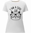 Женская приталенная премиум-футболка собственного производства. Выполнена из качественной ткани (95% хлопок, 5% эластан) — плотная, мягкая и приятная к телу. Принт I am a cool cat можно нанести на грудь, спину или рукав.
