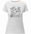 Женская приталенная премиум-футболка собственного производства. Выполнена из качественной ткани (95% хлопок, 5% эластан) — плотная, мягкая и приятная к телу. Принт Keep calm and love cats можно нанести на грудь, спину или рукав.