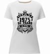 Женская приталенная премиум-футболка собственного производства. Выполнена из качественной ткани (95% хлопок, 5% эластан) — плотная, мягкая и приятная к телу. Принт May 1975 awesome можно нанести на грудь, спину или рукав.