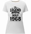 Женская приталенная премиум-футболка собственного производства. Выполнена из качественной ткани (95% хлопок, 5% эластан) — плотная, мягкая и приятная к телу. Принт This Legend was born in May 1968 можно нанести на грудь, спину или рукав.