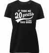 Женская приталенная премиум-футболка собственного производства. Выполнена из качественной ткани (95% хлопок, 5% эластан) — плотная, мягкая и приятная к телу. Принт It took 20 years to look this good можно нанести на грудь, спину или рукав.