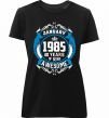 Женская приталенная премиум-футболка собственного производства. Выполнена из качественной ткани (95% хлопок, 5% эластан) — плотная, мягкая и приятная к телу. Принт January 1985 40 years of being Awesome можно нанести на грудь, спину или рукав.