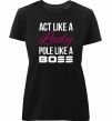 Женская приталенная премиум-футболка собственного производства. Выполнена из качественной ткани (95% хлопок, 5% эластан) — плотная, мягкая и приятная к телу. Принт Act like a lady pole like a boss можно нанести на грудь, спину или рукав.