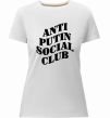 Женская приталенная премиум-футболка собственного производства. Выполнена из качественной ткани (95% хлопок, 5% эластан) — плотная, мягкая и приятная к телу. Принт Anti putin social club можно нанести на грудь, спину или рукав.