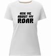 Женская приталенная премиум-футболка собственного производства. Выполнена из качественной ткани (95% хлопок, 5% эластан) — плотная, мягкая и приятная к телу. Принт Ask me about my roar можно нанести на грудь, спину или рукав.