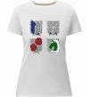 Женская приталенная премиум-футболка собственного производства. Выполнена из качественной ткани (95% хлопок, 5% эластан) — плотная, мягкая и приятная к телу. Принт Атака титанів емблеми можно нанести на грудь, спину или рукав.