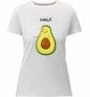 Женская приталенная премиум-футболка собственного производства. Выполнена из качественной ткани (95% хлопок, 5% эластан) — плотная, мягкая и приятная к телу. Принт Авокадо Half можно нанести на грудь, спину или рукав.