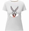 Женская приталенная премиум-футболка собственного производства. Выполнена из качественной ткани (95% хлопок, 5% эластан) — плотная, мягкая и приятная к телу. Принт Бакс Банні голова можно нанести на грудь, спину или рукав.