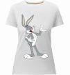 Женская приталенная премиум-футболка собственного производства. Выполнена из качественной ткани (95% хлопок, 5% эластан) — плотная, мягкая и приятная к телу. Принт Бакс Банні можно нанести на грудь, спину или рукав.