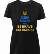 Женская приталенная премиум-футболка собственного производства. Выполнена из качественной ткани (95% хлопок, 5% эластан) — плотная, мягкая и приятная к телу. Принт Be brave like Ukraine можно нанести на грудь, спину или рукав.
