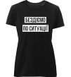 Женская приталенная премиум-футболка собственного производства. Выполнена из качественной ткани (95% хлопок, 5% эластан) — плотная, мягкая и приятная к телу. Принт Бездіємо по ситуації можно нанести на грудь, спину или рукав.