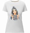 Женская приталенная премиум-футболка собственного производства. Выполнена из качественной ткани (95% хлопок, 5% эластан) — плотная, мягкая и приятная к телу. Принт Біллі Айліш фарби можно нанести на грудь, спину или рукав.