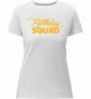 Женская приталенная премиум-футболка собственного производства. Выполнена из качественной ткани (95% хлопок, 5% эластан) — плотная, мягкая и приятная к телу. Принт Birthday squad можно нанести на грудь, спину или рукав.