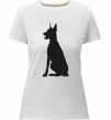 Женская приталенная премиум-футболка собственного производства. Выполнена из качественной ткани (95% хлопок, 5% эластан) — плотная, мягкая и приятная к телу. Принт Black doberman можно нанести на грудь, спину или рукав.