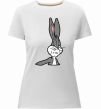 Женская приталенная премиум-футболка собственного производства. Выполнена из качественной ткани (95% хлопок, 5% эластан) — плотная, мягкая и приятная к телу. Принт Bugs Bunny meme можно нанести на грудь, спину или рукав.