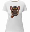 Женская приталенная премиум-футболка собственного производства. Выполнена из качественной ткани (95% хлопок, 5% эластан) — плотная, мягкая и приятная к телу. Принт Бульдог з сигарою можно нанести на грудь, спину или рукав.